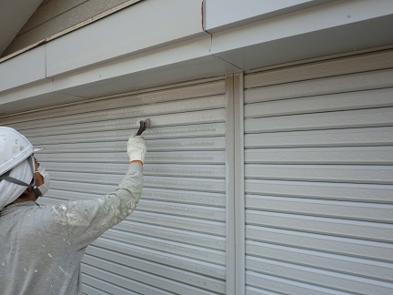 シャッター錆止め施工中