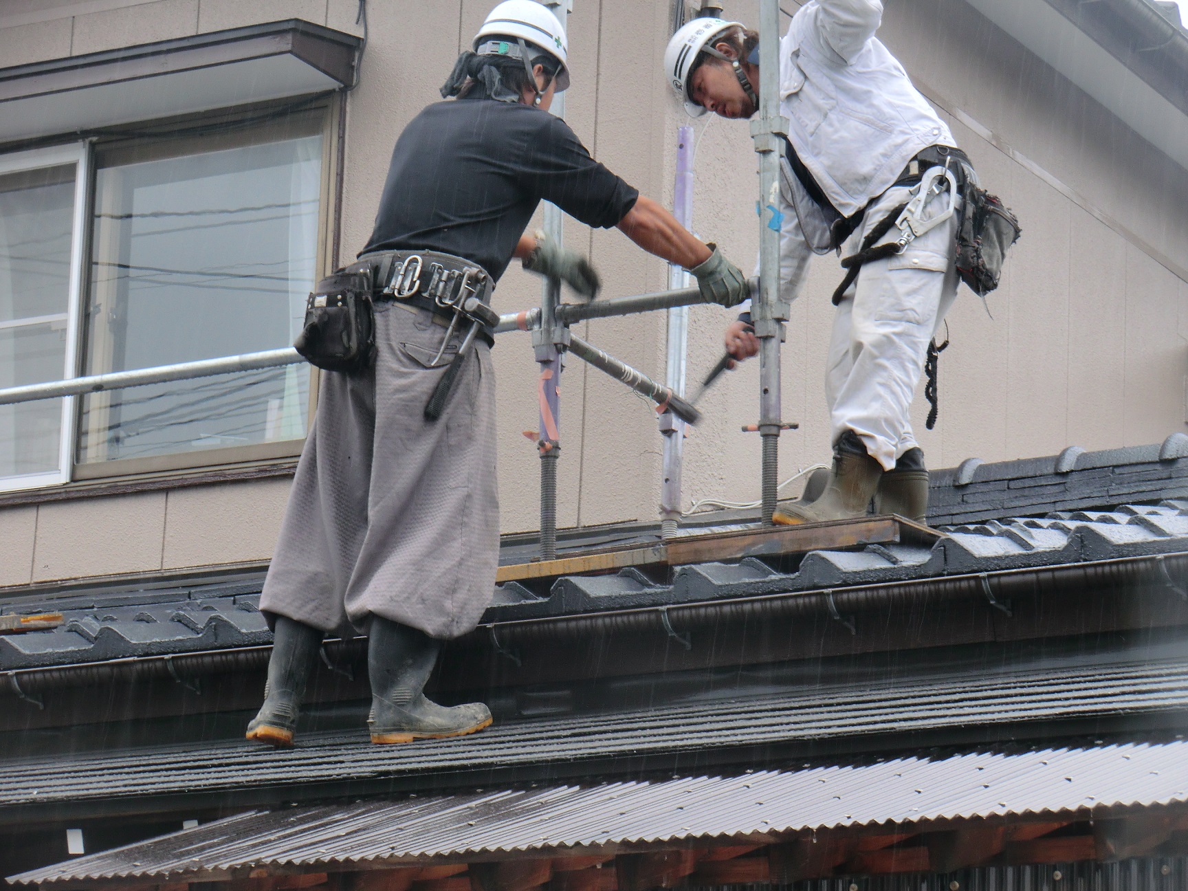 足場撤去後は、ゴミが必ず落ちます