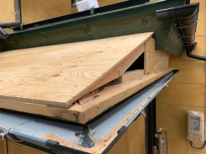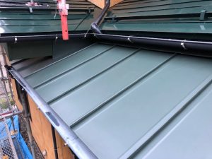 既存屋根に防水材を敷いてから、勾配をつける下地を造作して新たに屋根を葺き直しました。