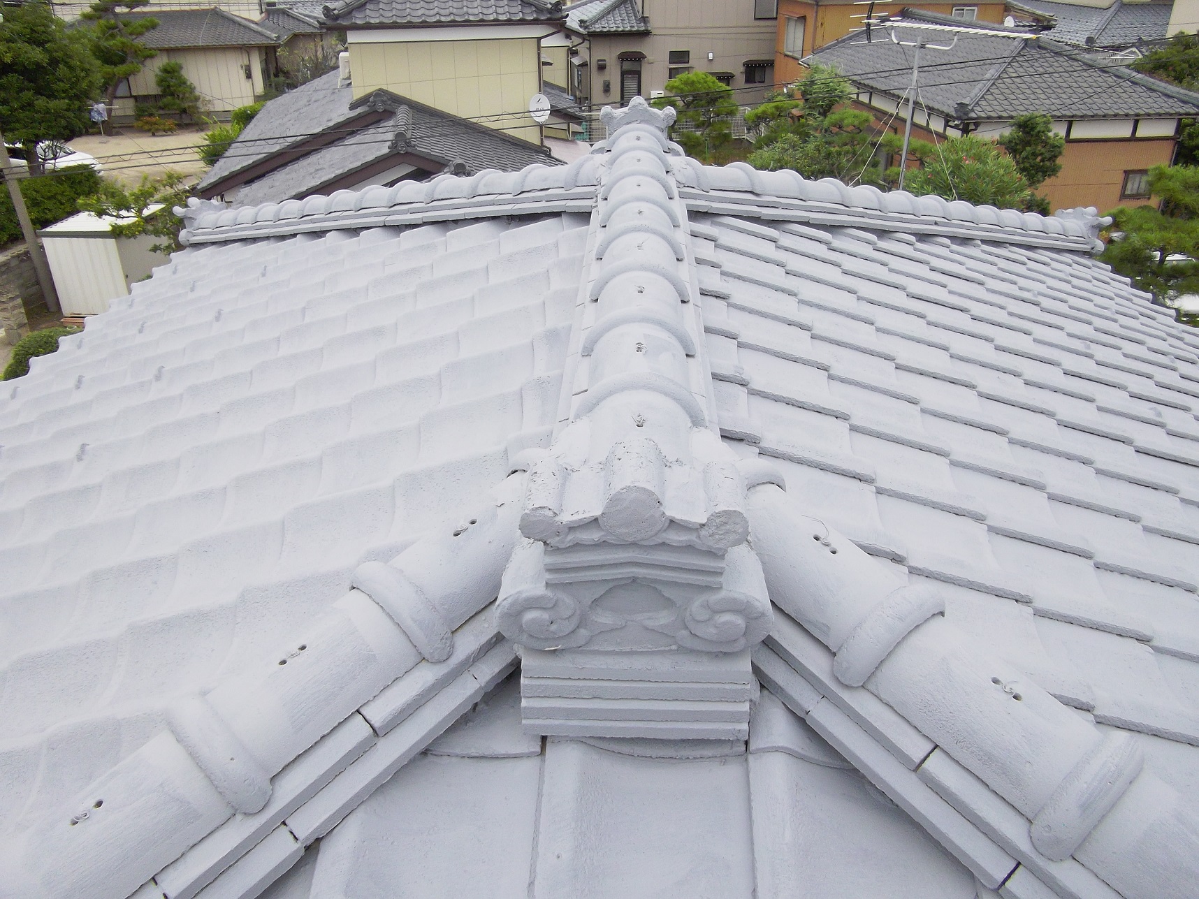 屋根の中塗り作業完了です。