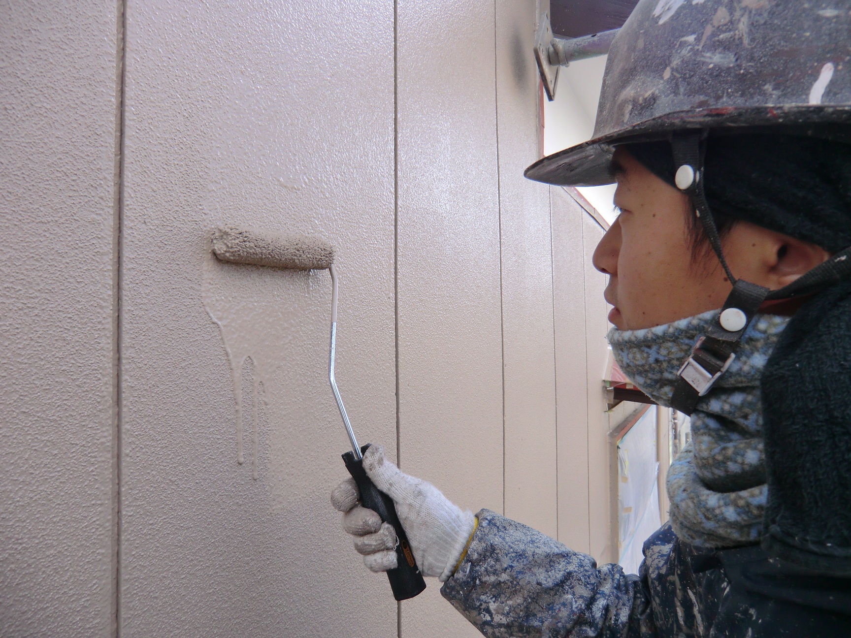 外壁の2回塗りの作業中です。