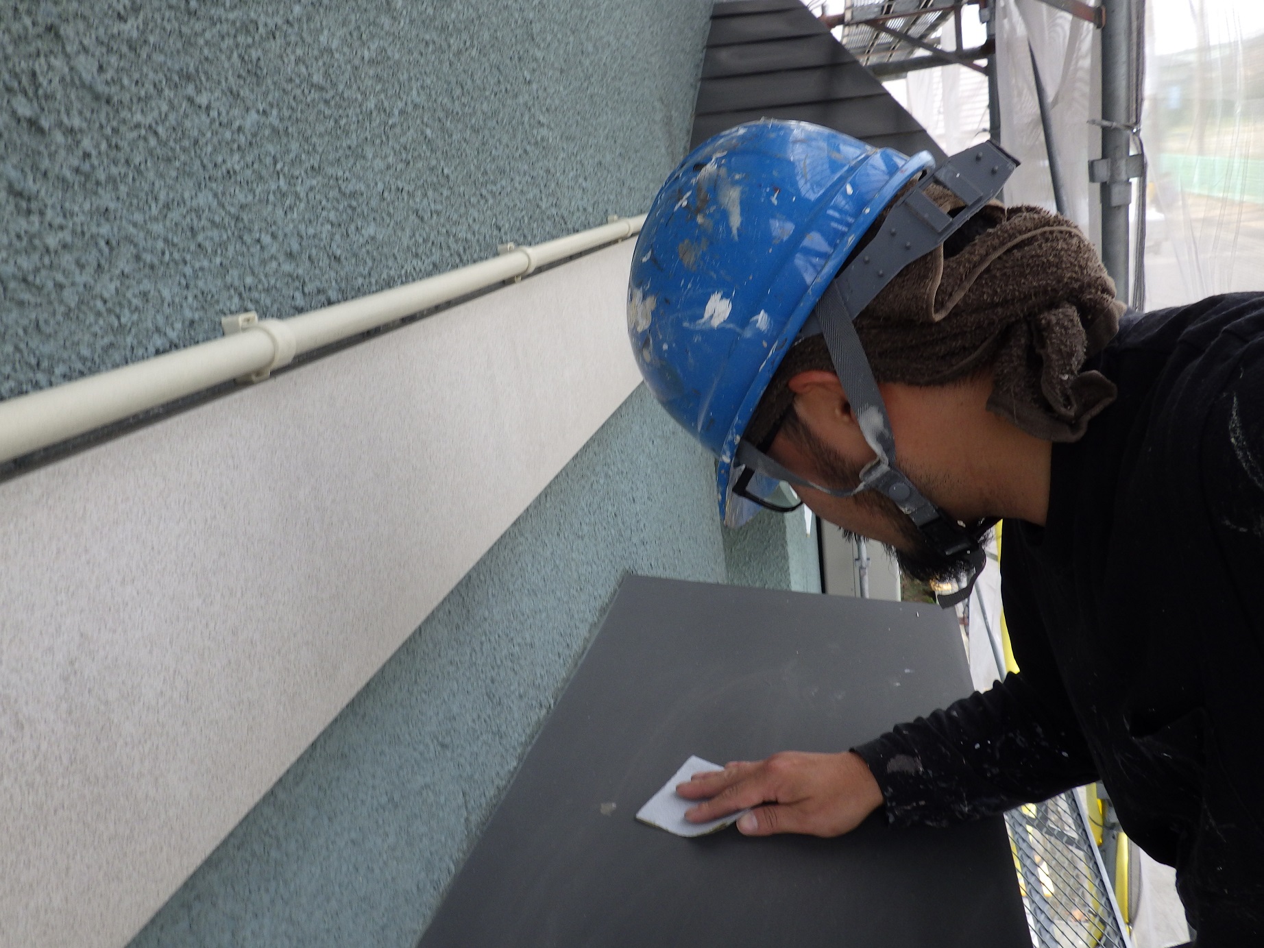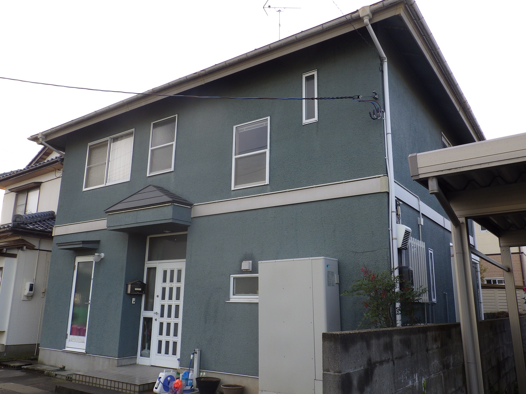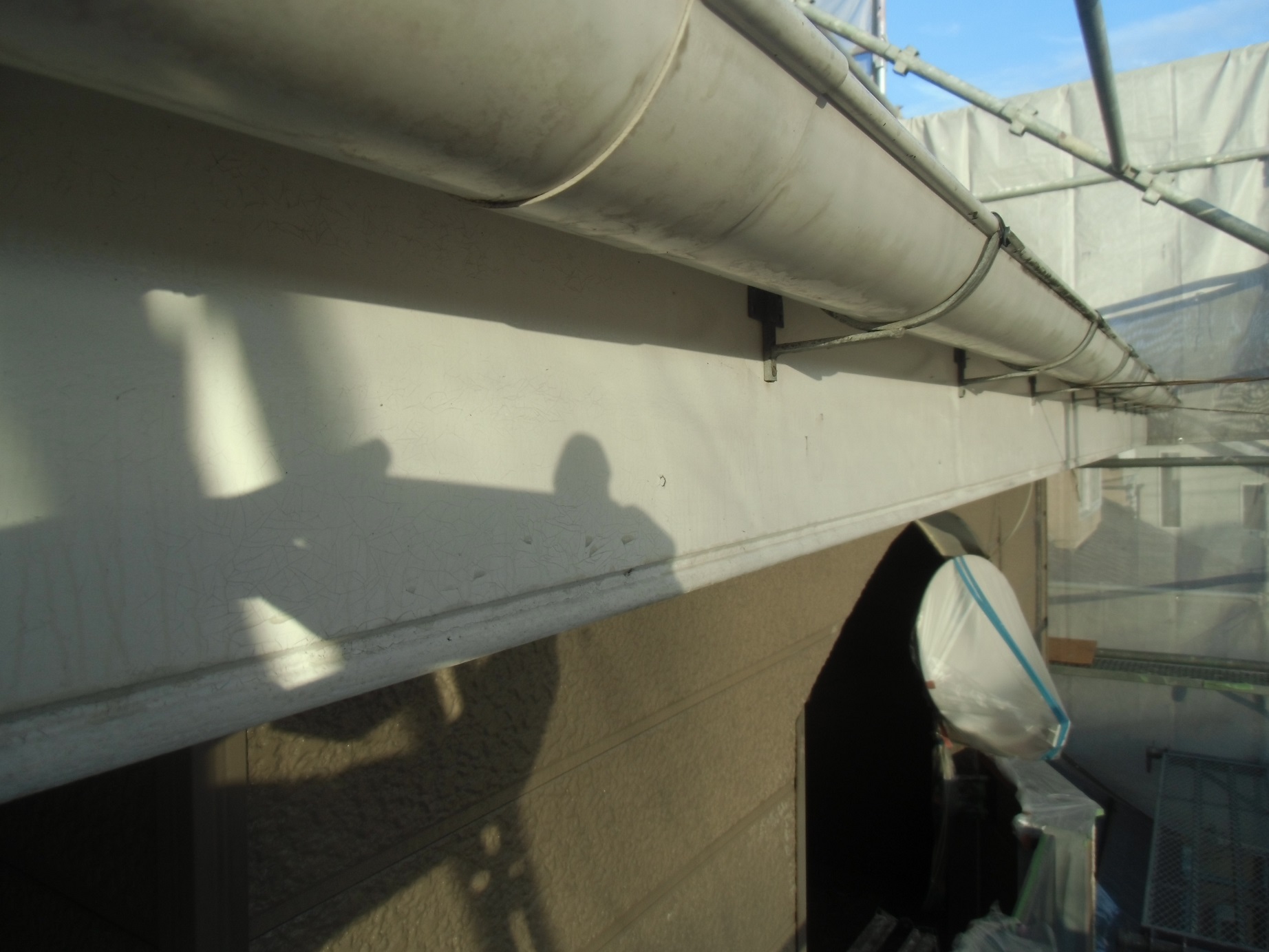 破風板と軒天と竪樋は以前の色のままで綺麗に