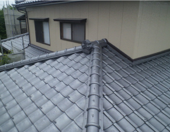 ⑦乾燥後の下塗り作業ですが、傷んだ瓦の表面に下塗りを入れます。