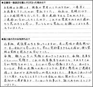 他の業者さんと比べましたが、社長様の誠意に惹かれました。本当に依頼者の立場に立って考えて下さり感謝しております。工事費についても納得のいく金額を提示いただきました。安いからとかの理由ではなく、この内容なら間違いないという見積で安心して契約させていただきました。